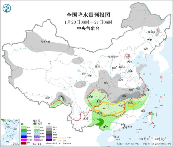 最新预报显示,18日至21日,寒潮主体将继续渗透南下,给中东部地区带来大范围强降温、雨雪、冰冻天气。期间,上述地区日平均或最低气温普遍下降6~12℃,黄淮南部、江淮西部、江汉东部、江南中西部及贵州东部、广西北部等地部分地区降温幅度可达12~14℃,局地16℃以上;陕西、河南、山东、湖北、安徽、江苏等地将有大雪或暴雪,河南、湖北、湖南、贵州、重庆等地部分地区将有冻雨。